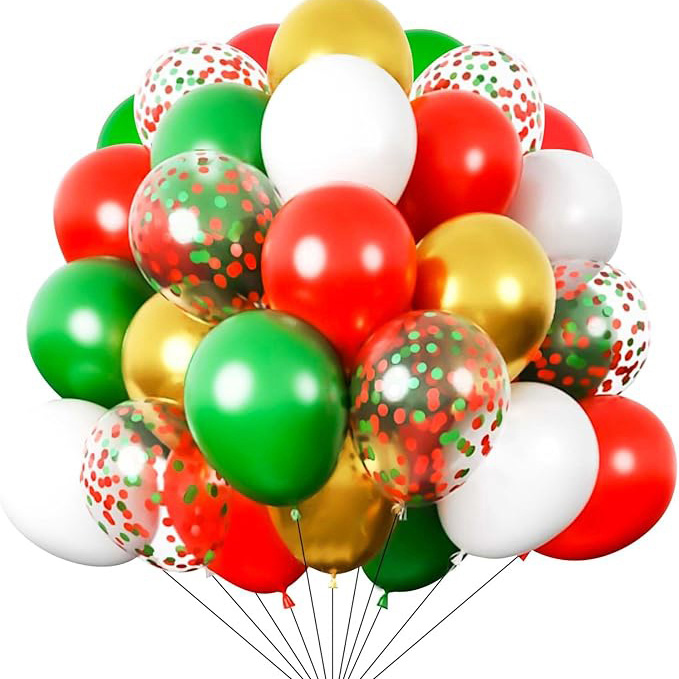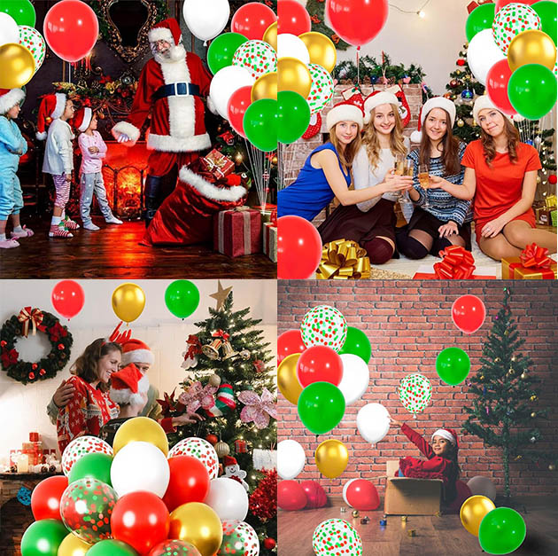 Конфетті: Прозорий м'яч вбудований у червоний, зелений та золотий конфетті. Після інфляції це як сніжинки, надаючи динамічну атмосферу різдвяному кулі конфетті та змінюючи статичну композицію на "занурюючу снігову сцену".