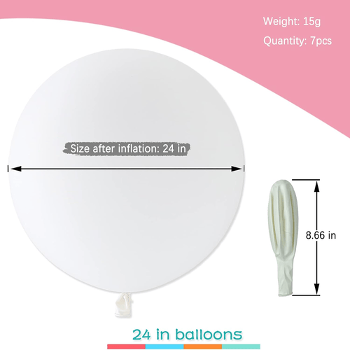 Невеликий набір латексних повітряних куль розміром 24 дюйми: використовуйте різні кольори повітряних куль, щоб створити милий набір повітряних куль. Це дуже підходить для гри дітей. А також можна встановити як хорошу сцену для фотозйомки. Більшість людей із задоволенням наповнюють їх гелієм, щоб створити ефект підняття вгору.