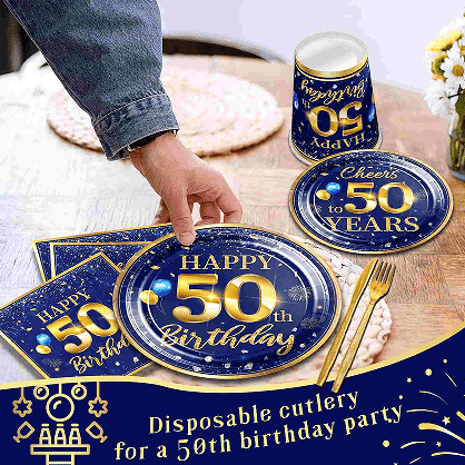 Набір одноразового посуду до 50-річчя складається з десертної тарілки 7 дюймів, основної тарілки 9 дюймів, гігроскопічної серветки, харчового пластикового ножа, виделки та ложки. 7-дюймова паперова тарілка підходить для тортів і закусок, а 9-дюймова паперова тарілка може вмістити обідній посуд. Серветки м’які та приємні до шкіри, добре поглинають воду, пластикові ножі, виделки та ложки міцні, безпечні та нетоксичні, їх можна викинути відразу після використання, що економить час і час на чищення. Наш набір для прикраси столового посуду повітряними кулями до 50-річчя підходить для святкування днів народження, ювілеїв, виходу на пенсію та інших особливих випадків. Дайте повну волю своїй творчості та використовуйте ці декорації в різних сценах, щоб зробити будь-яку діяльність більш чудовою та незабутньою.