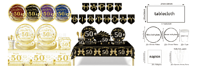 Паперовий наповнювач до дня народження: як основний елемент прикраси торта, головна листівка бере слова «з днем народження, 50 років» як серцевину та відповідає основному декору торта феєрверками, зірками, капелюхом до дня народження та іншими формами. Опорні круглі «50», сприятливі хмари, корона та інші міні-картки, виготовлені з потовщеного картону та підібрані твердими бамбуковими паличками, можна прикрасити кекси та десертні столи вишуканими деталями.