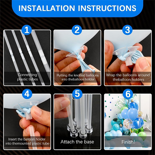 Вибір дизайну та матеріалу підставки для повітряної кулі, виробленої фабрикою повітряної кулі NIUN®, були ретельно відібрані. Пластикові труби та арматура виготовлені з міцного пластику і призначені для витримки ваги повітряної кулі. Нижня частина спеціально підібрана з сильною акриловою пластиною, яка робить всю повітряну кулю більш стійкою і твердою. Цей дизайн дозволяє споживачам бути впевненим використовувати цю підставку для підлоги на повітряній кулі, будь то для комерційних заходів чи сімейних зборів, він може показати красу та чарівність повітряної кулі та додавати радість і колір різним випадкам.
