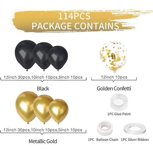 ШИРОКЕ ВИКОРИСТАННЯ: Чорні та золотисті набори Balloon Arch підходять для багатьох випадків. Ними можна прикрасити дні народження, новорічні дні, різні свята, день захисту дітей і так далі.