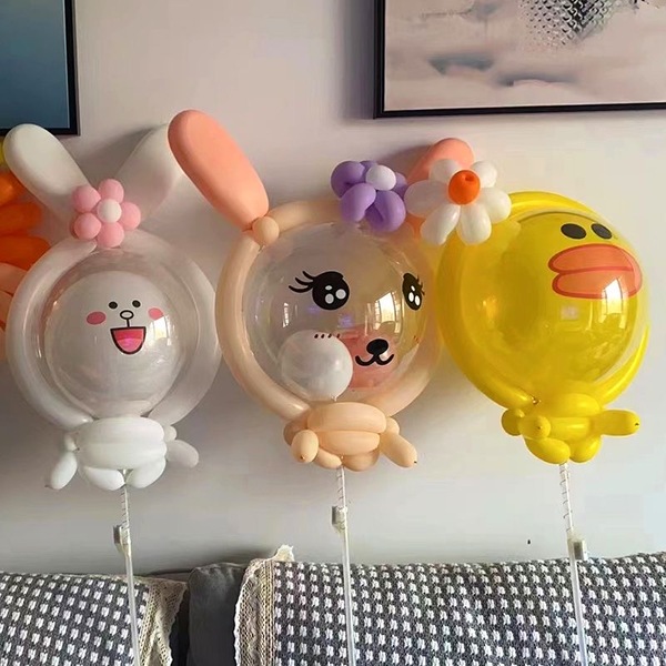 Для початківців процес складання також простіший порівняно з іншими стилями, що означає, що ви можете витрачати менше часу, щоб отримати більше прибутку.Повітряна куля Бобо з іграшковим кроликомвиготовлений за допомогою 24-дюймової повітряної кулі Bobo, всередині якої також можна побачити не лише іграшкового зайчика, а й блискучі конфетті. Після наповнення ви можете надути повітряну кулю повітрям або гелієм відповідно до бажаного ефекту. Якщо наповнити її гелієм, конфетті всередині повітряної кулі може плавати навколо іграшкового зайчика, створюючи дуже привабливий ефект. Наклейте кілька наклейок на повітряну кулю. Повітряна куля Bobo може зробити його більш елегантним, наприклад слова благословення або наклейки-емотикони тощо. Після виконання всіх кроків ви можете використовувати різнокольорові шовкові стрічки, щоб закріпити повітряну кулю Bobo на надійному місці.
