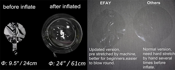 Ці кулі з широкими ротами потребують значних зусиль, щоб розтягнутись вручну. Brand Niun спеціально розтягує повітряні кулі за машиною перед доставкою, заощаджуючи час і зусилля при надуванні. Для кращих результатів та більш закругленої форми повітряної кулі ми рекомендуємо використовувати електричний повітряний насос.