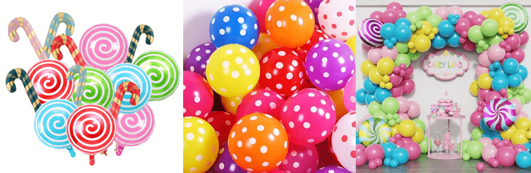 Набір гірлянд із повітряними кульками на тему цукерок із цукерковим кольором солодкої мрії та милою формою льодяника як основними елементами дизайну, загальний стиль живий та милий.