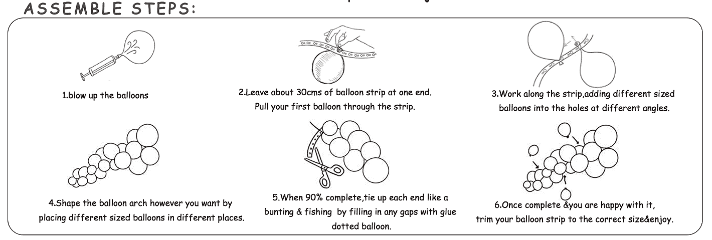 Набір містить повний набір матеріалів, таких як тематичні повітряні кулі, ланцюжки для повітряних куль, клейові точки, аксесуари тощо. Покупці можуть зібрати його, коли вони його отримають, без додаткового підбору. Він дуже конкурентоспроможний для самостійного використання та роздрібної торгівлі.