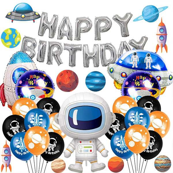 2. Продаж невеликих пакетів: Набір повітряної кулі з мультфільму. Зазвичай цей пакет складається з мультфільму космонавта або повітряної кулі ракетної фольги, 18-дюймової зоряної повітряної кулі та 18-дюймової круглої космічної серії фольги. Деякі пакети також можуть додати латексні кулі. Наш пакет може бути налаштований відповідно до вимог клієнта для задоволення потреб кожного клієнта. Ця мультфільмна тема з фольги з повітряної кулі невеликий пакет, кількість невелика і вишукана, головне зображення мультфільму космонавта. Повітряні кулі з тематичною тематикою фольги дуже привабливі і можуть бути використані для прикраси на тематику простору та прикраси дня народження у космосі. Ідеально підходить для хлопчиків, які мріють вивчити Всесвіт, ці повітряні кулі візьмуть ваш простір на тематичний набір для прикраси на день народження на нові висоти.