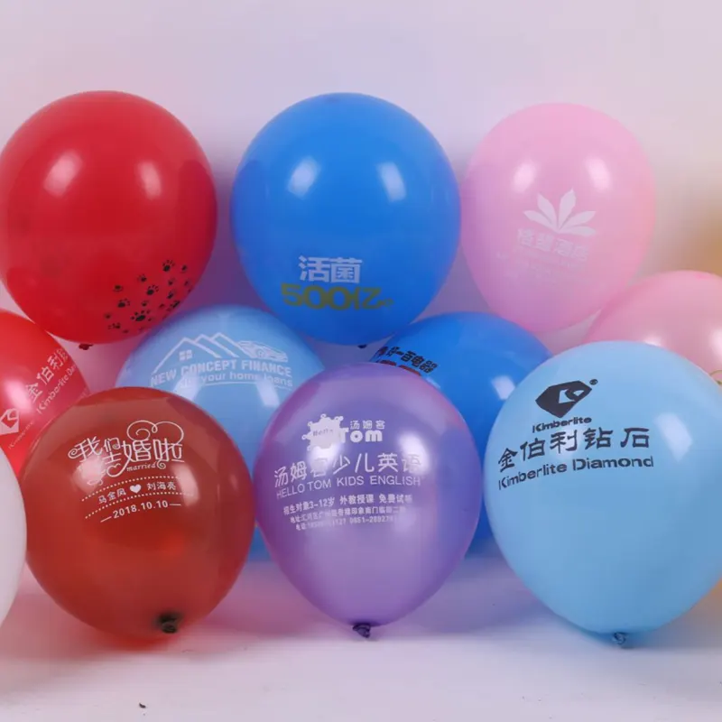 Гнучкі та різноманітні розміри: ми підтримуємо індивідуальний друк стандартних розмірів, таких як5 дюймів(діаметр 12 см),10 дюймів(діаметр 38 см), і12 дюймів(діаметр 30 см),18 дюймів(діаметр 38 см), і36 дюймів(діаметр 65 см). Ми також підтримуємо індивідуальний друклатексні повітряні кулібудь-якого розміру в межах 36 дюймів (мінімальна кількість замовлення: 500 штук).