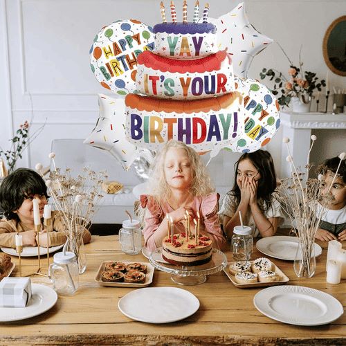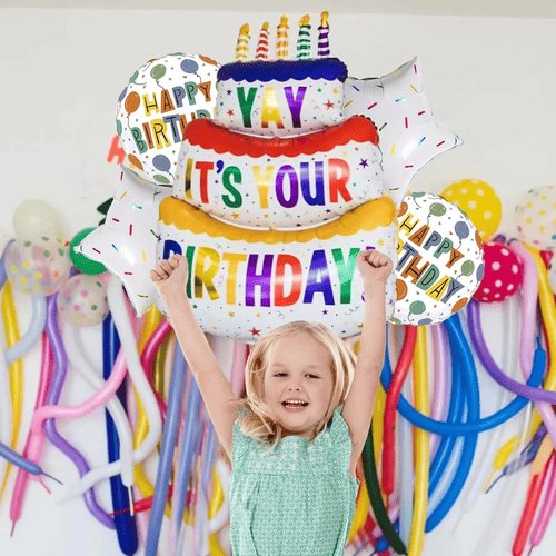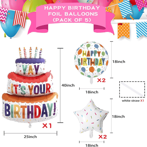 Повітряна кулька з фольги для торта - найголовніше в наборі з фольгованих кульок на день народження. На додаток до цього, він також має фольговану повітряну кулю зі зіркою та круглу фольговану кулю на день народження.