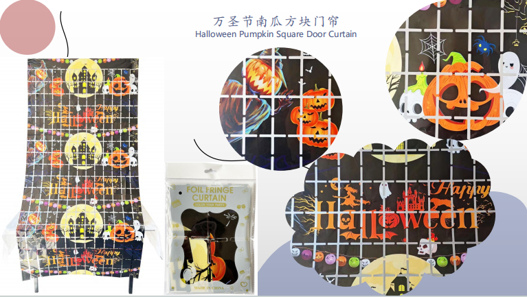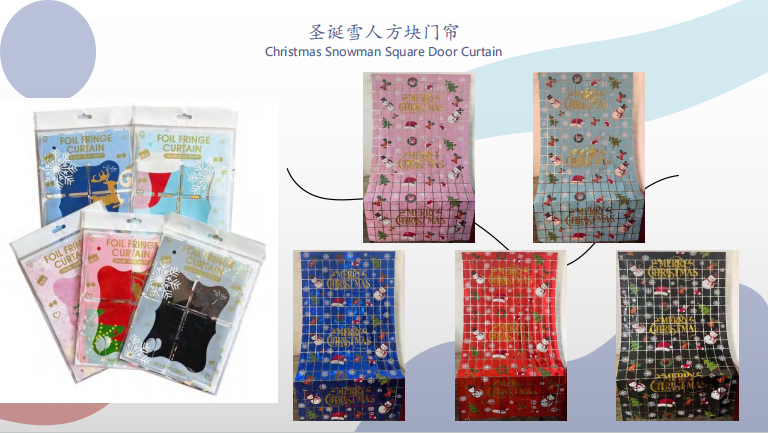 Такі як різдвяна тематика зеленої та червоної фольги, чорна та помаранчева фольга з тематикою на Хеллоуїн та завіса з фольгою з гарбузами, кажанами, павуками та іншими формами, які можна використовувати для святкової прикраси в будинках, торгових центрах, барах та інших місцях.