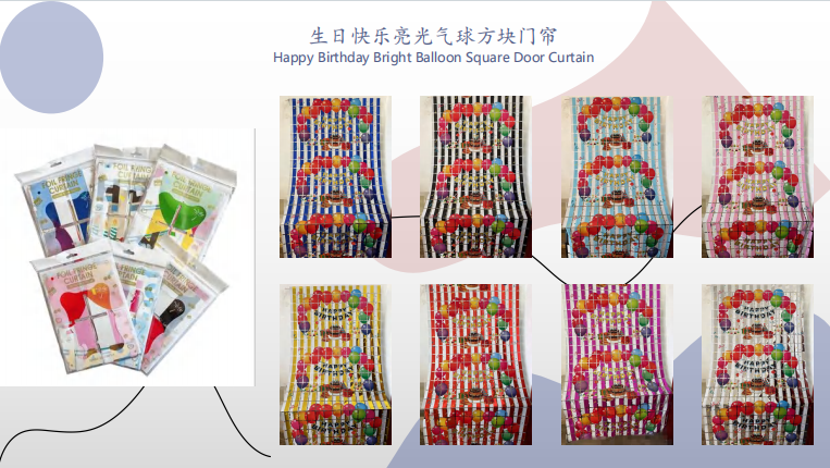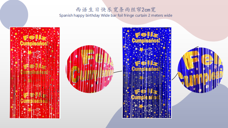 наприклад, завісу фольги з темою національного кольору прапора, яка може бути використана для патріотичних заходів, таких як Національний день; Також є чорно -біла завіса з фольгою з гоночною темою, які підходять для гоночних тематичних вечірок тощо.