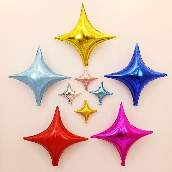 Коли з повітряними кулями з латексом використовуються чотири кутові зірки, вони можуть ідеально поєднати переваги обох. Самі латексні кулі мають переваги м'якої текстури та насичених кольорів, а повітряні кулі - більш сучасні та благородні. Поєднання цих двох типів повітряних куль може не тільки покращити загальний декоративний ефект, але й надати вечірці більше шарів.