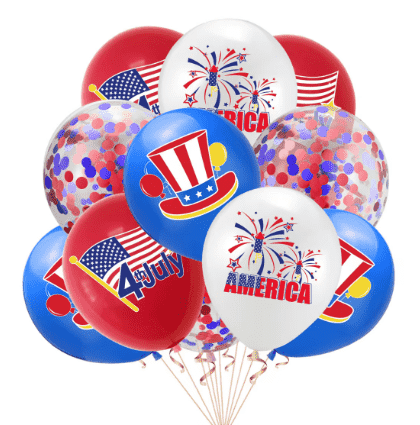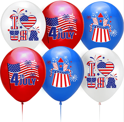 Їх можна багаторазово надувати, беручи до уваги як практичність, так і захист навколишнього середовища. У процесі оформлення ми додали різні особливі елементи святкового декору. На латексних повітряних кульках нанесено вишукані зірчасті смуги, візерунки п’ятикутної зірки та напис англійською мовою «Happy 4th of July». Фольговані повітряні кулі використовуються для створення класичних форм до Дня незалежності, таких як тривимірні смуги зірок, білоголовий орлан і цифра «4». Деякі повітряні кулі також додано спалахами, такими як золота пудра та блискітки, щоб зробити ефект декору більш привабливим.