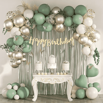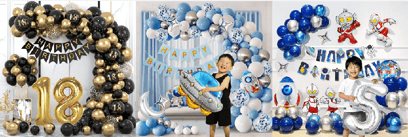 Основним стилем є латексна повітряна куля Happy Birthday такого ж або додаткового кольору зЛист з днем народження фольговані куліабофольговані кульки з номерами. Класичні стилі включають гелеву повітряну кулю Macaroon, рожеву фольговану повітряну кулю Happy Birthday, чорну латексну повітряну кулю, золоту фольговану повітряну кулю з цифрами. Латексні повітряні кульки можна нанизати на ланцюжок повітряних кульок і повісити на стіну або стелю, з фольгованими повітряними кульками як візуальним центром і невеликою кількістю прикрас стрічками, щоб швидко створити просту та текстуровану атмосферу вечірки.
