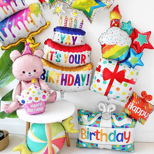 Фольгована повітряна куля з днем народження має сильніший візуальний ефект і відчуття високого рівня, виріб виготовлено з алюмінієвої фольги з високим глянцем, поверхня має металеву текстуру, має гарний відбиваючий ефект, сяючи під світлом, може стати центром вечірки. Класичними моделями є повний набір повітряної кульки з літерами «Happy Birthday» і кульок із цифрами «18», «30» і «60». Модельні моделі включають торти, кохання, зірки, героїв мультфільмів, тварин тощо, які підходять для різних тематичних потреб дітей та дорослих.