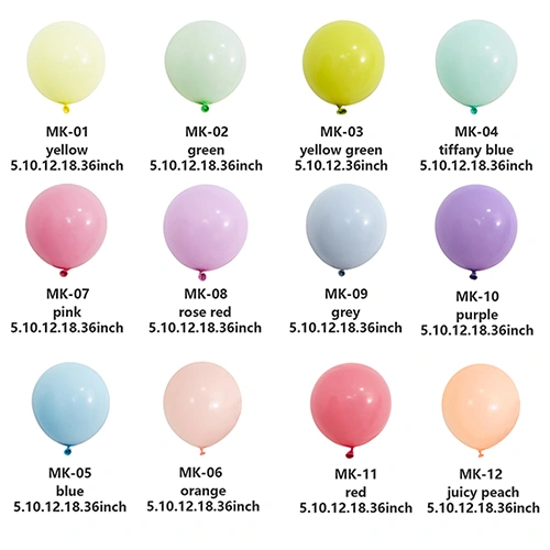 Повітряні кульки Macaron:Також відомі як повітряні кульки цукеркового кольору, ніжні та яскраві кольори улюблені дітьми