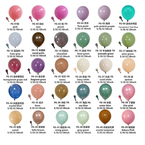 Латексні повітряні кулі широко використовуються як декоративні та розважальні предмети. Ці повітряні кульки дуже популярні в різних випадках через різні кольори та способи використання. Від матового червоного, жовтого, синього та зеленого до ретро-рожевого та фіолетового, а потім до металевих тонів, таких як золото та троянда, високоякісні повітряні кулі можуть створювати дивовижні візуальні ефекти та відповідати потребам у різних сценаріях.