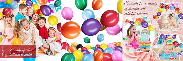В даний час повітряні кулі Latex пропонують широкий вибір розмірів, включаючи 6-дюймові, 10-дюймові та 12-дюймові кулі. Кольори включають макаронні повітряні кулі, матові повітряні кулі та металеві повітряні кульки. Повітряні кулі з латексом у різних кольорах та розмірах можна легко поєднувати з іншими латексними повітряними кулями різного розміру та типами, щоб створити ідеальну прикрасу на повітряній кулі, додаючи дотик веселощів на вечірку та обмінюючись радісними моментами з родиною.