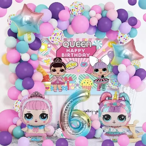 Набір тематичних повітряних куль LOL містить латексні повітряні кулі, повітряні кульки з фольги та інші аксесуари, велику кількість повітряних куль, які підходять для дитячих днів народжень, святкування ювілеїв, церемоній хрещення, вихідних, різдвяних вечірок та інших випадків, коли потрібно прикрасити.