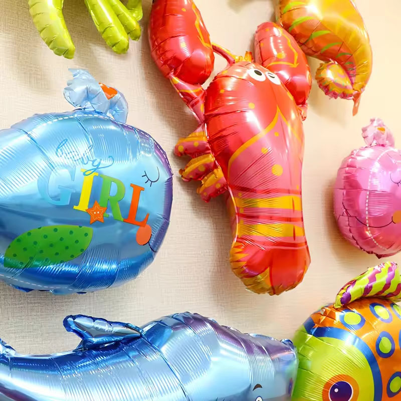 Фольговані повітряні кулі з морським життям — це нова продукція для повітряних куль, випущена фабрикою повітряних куль NiuN®. Ця фольгована повітряна куля з морськими мешканцями має широкий вибір кольорів. Існує понад 50 видів фольгованих повітряних куль, таких як дельфіни, омари, риби-клоуни, морські коники, краби тощо. Якщо у вас є фольговані повітряні кулі в інших стилях морського життя, які ви хочете придбати, і наші фотографії їх не покривають, ви можете надіслати нам зображення або дизайни. Ми дуже раді налаштувати ваші ексклюзивні повітряні кулі з фольги під вас. Ми віримо, що ці барвисті та чарівні фольговані повітряні кулі серії морських мешканців можуть додати особливу атмосферу вашій події, будь то вечірка, свято чи будь-який інший випадок. Фабрика повітряних куль NiuN® прагне надавати нашим клієнтам продукти та послуги найкращої якості. Ми віримо, що завдяки нашим індивідуальним послугам ви зможете отримати унікальне оформлення морської тематики, щоб зробити вашу подію більш незабутньою.