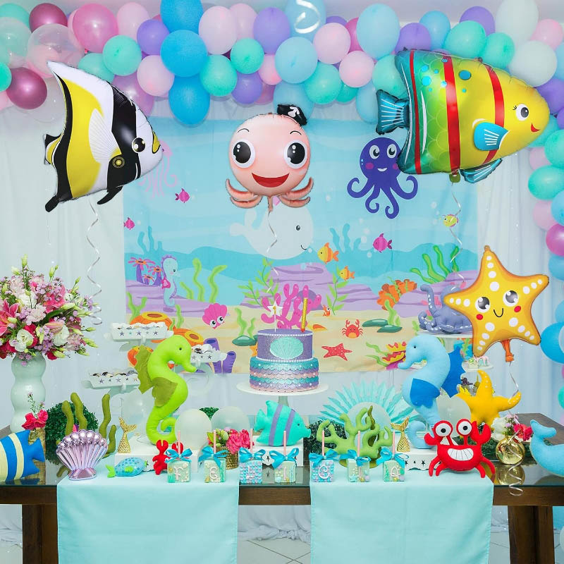 Фольговані повітряні кулі серії Ocean доступні в різних кольорах і тваринах. Фольговані повітряні кулі на морську тематику можна використовувати для вечірок на морську тематику, дитячих вечірок, днів народжень, весіль, святкувань, випускних, вечірок тропічного гавайського літа, заручин, ювілеїв, вечірок на морську тематику тощо. Яскраві кольори та милі візерунки можуть створити щасливу атмосферу, привернути погляди дітей і зробити вечірку приємнішою. Ця мила та чарівна фольгована повітряна куля з морськими мешканцями чудово підходить для святкування днів народження або для використання як підставка для фотографій. Вони дійсно можуть принести вам більше задоволення.