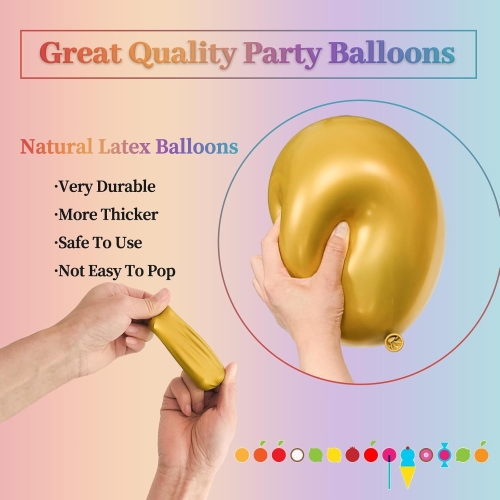 Розмір: металеві латексні повітряні кульки мають розміри 5 дюймів, 10 дюймів, 12 дюймів, 18 дюймів і 36 дюймів.