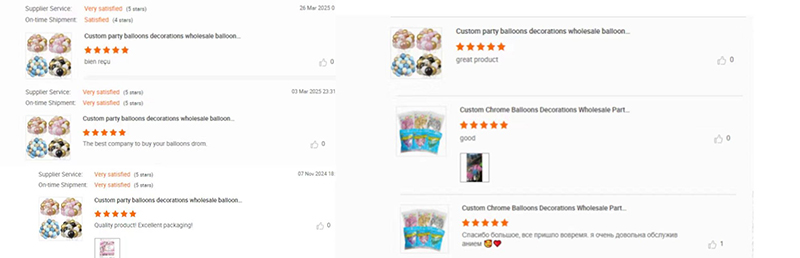 Для упаковки можна вибрати один колір металік. Популярні варіанти - шампань, зелений металік, рожеве золото і так далі. Це робить вашу сцену простою та цілісною. Він дуже добре тягнеться. Він майже ніколи не лопається. Він залишається повним протягом більше 12 годин після надування. Ви також можете змішувати різні металеві відтінки. Спробуйте золото і срібло разом. Це створює багатошаровий, привабливий декор. Поєднуйте ці повітряні кульки з латексними повітряними кульками з конфетті. Гладкий блиск металевих повітряних кульок контрастує з блискучою текстурою конфетті. Конфетті рухається всередині, коли ви їх струшуєте. Це додає веселощів і руху в будь-який простір. Невеликі набори повітряних кульок металевого кольору підходять для святкування днів народжень, весіль, святкових заходів та вітрин магазинів. Кожен комплект проходить суворі тести на герметичність і безпеку. Він відповідає міжнародним стандартам, таким як EN71 і CE. Надути їх легко. Ними можуть скористатися навіть новачки, які займаються своїми руками. Їх також люблять професійні організатори заходів. Ви створите простір з дивовижною атмосферою.