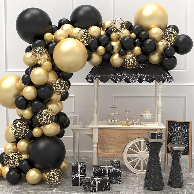 Цей набір металевих повітряних куль на день народження включає 10-дюймові, 12-дюймові, 18-дюймові та 36-дюймові металеві повітряні кулі золотого кольору та металеві чорні повітряні кулі, а також 22-дюймову фольговану повітряну кулю у формі зірки та фольговану повітряну кулю з днем народження. Його легко встановити для початківців, і його можна надути повітрям або гелієм. Крім того, клієнти можуть налаштувати його відповідно до кольору, який вони віддають перевагу, та відрегулювати його до найбільш підходящої комбінації для ваших повітряних куль.