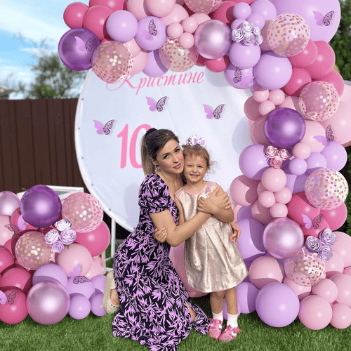 Рожево-фіолетовий набір гірлянд із повітряних куль — один із найпопулярніших наборів повітряних куль у NiuN®. Завдяки привабливим кольорам і блискучій поверхні його люблять багато людей, особливо дівчата. Він поставляється з різними латексними повітряними кулями. Колір у них рожево-фіолетовий. На додаток до звичайної латексної повітряної кулі ми також додали повітряні кульки з конфетті, щоб збільшити кількість шарів.