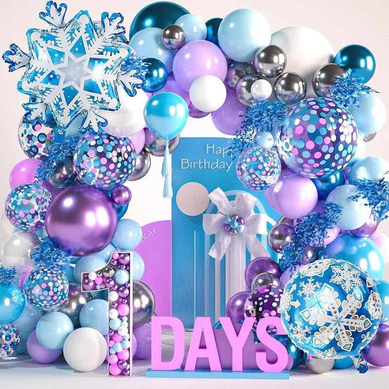 Якщо ви хочете створити привабливу декоративну родзинку для вашої вечірки, спробуйте нашу повітряну кулю з фольгою з повітряною кулею з набором арки для гірлянди. Ця пурпурна архійна прикраса блакитної кулі дуже підходить для замороженої тематичної дня народження, тематичної вечірки Аїші, тематичної вечірки на льоду та снігу, вечірці зимових країн чудес, зимової тематичної вечірки, принцесової вечірки, вечірки для немовлят та нареченої. Незалежно від того, що весілля, дні народження, випускні, заручини, ювілеї, вечірки, що відкривають гендер, сім'ї в приміщенні та відкриті вечірки, цей пакет вінок з повітряними кулями з алюмінієвою кулькою з алюмінієвої фольги може задовольнити ваші потреби. Наші прикраси для вечірки допоможуть вам скрасити кожну мить вашої вечірки.