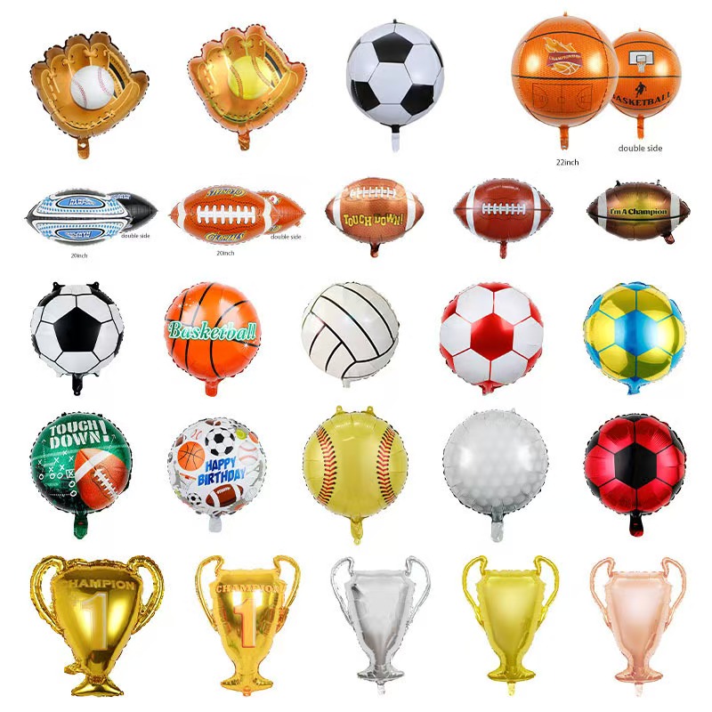 Дизайн охоплює моделювання спортивного інвентарю, баскетболу, футболу, гантелей, трофеїв, силуети спортивних фігур, «ПЕРЕМОГА», «ГОЛ» і «ЧЕМПІОН» та інші заохочувальні букви. Одна повітряна куля великого розміру (18-36 дюймів) не потребує складного підбору, і може стати візуальним фокусом, якщо її повісити в центрі або на вході заняття. Він особливо підходить для таких сцен, як вболівання за масштабні події, спортивні заходи на свіжому повітрі та спортивні ігри в університетському містечку, миттєво запалює ентузіазм сцени.